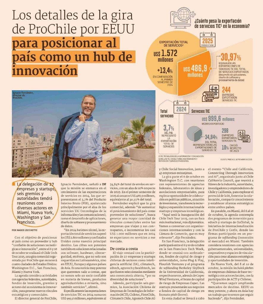 En el marco del Chile Tech Tour que llevará a cabo ProChile del 6 al 10 de octubre en Estados Unidos, el Diario Financiero entrevistó al Director General de la Institución para más detalles.