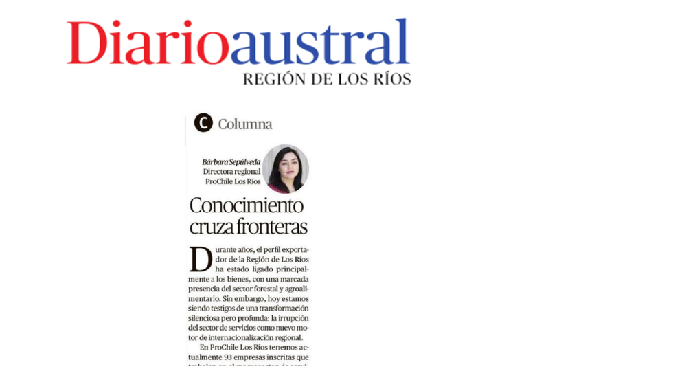 Una columna de opinión publicada en el Diario Austral, la directora regional de ProChile, Bárbara Sepúlveda, aborda el trabajo que se realiza con las empresas de locales y el conocimiento que cruza fronteras.