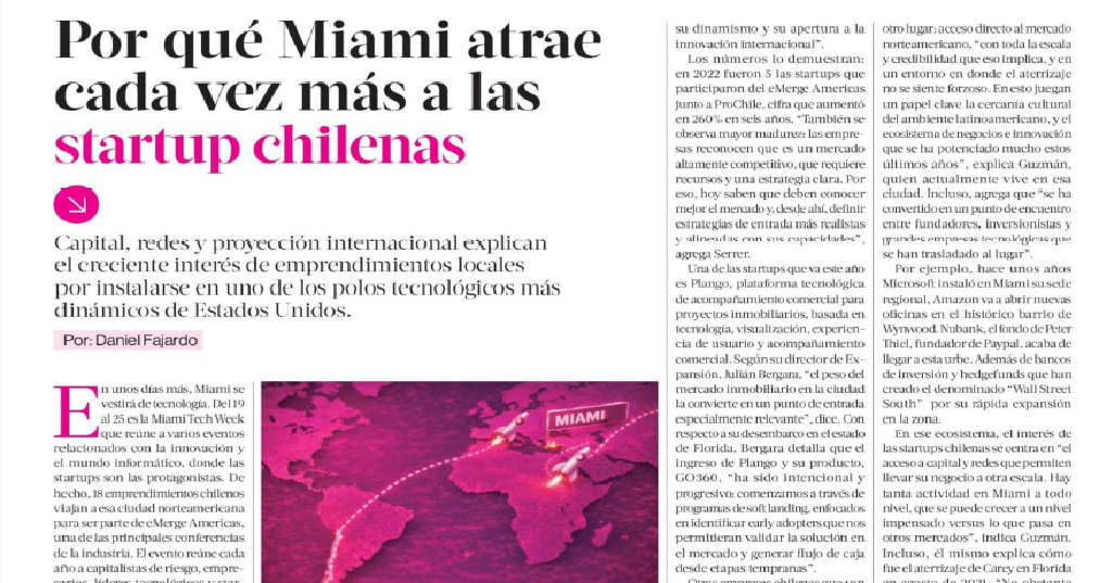 El diario Pulso La Tercera destacó la participación de ProChile en eMerge Americas Miami, donde participará con un stand con 18 empresas chilenas.