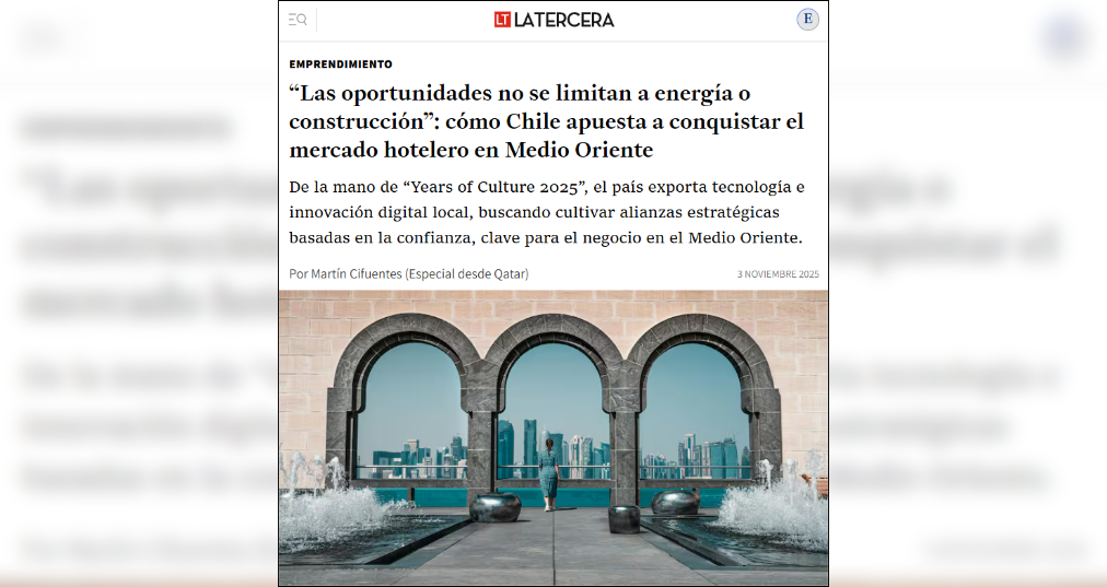 La sección de Emprendimiento de La Tercera publicó sobre la nueva versión de la "Hospitality Qatar 2025", instancia en que Chile presentó una oferta centrada en tecnología y servicios digitales para la industria hotelera, una categoría en la que el país busca posicionarse progresivamente.
