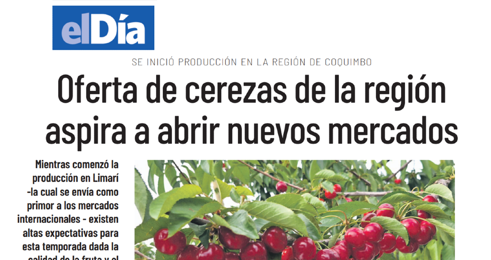 Una nota en el diario El Día da cuenta del trabajo que realiza ProChile en Coquimbo para apoyar la diversificación de mercados con los productores de cerezas de esa región.