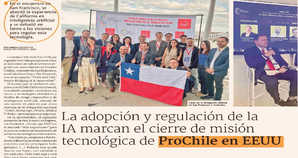 El Diario Financiero destacó la misión Chile Tech Tour 2025 que organizó ProChile para promocionar al país como un hub de servicios digitales en cuatro ciudades de Estados Unidos.